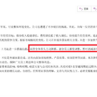 在这些执行落地后,26日是发薪日,没等来发薪日,却等来了一封毫无诚意,没有盖章,没有署名,敷衍的全员降薪邮件。